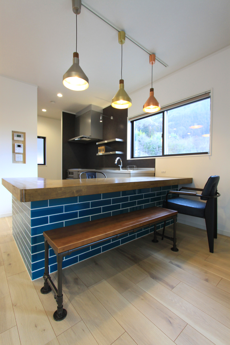 ダイニングカウンターの脚もテイストに合わせ、アイアンブラックで制作しました♪